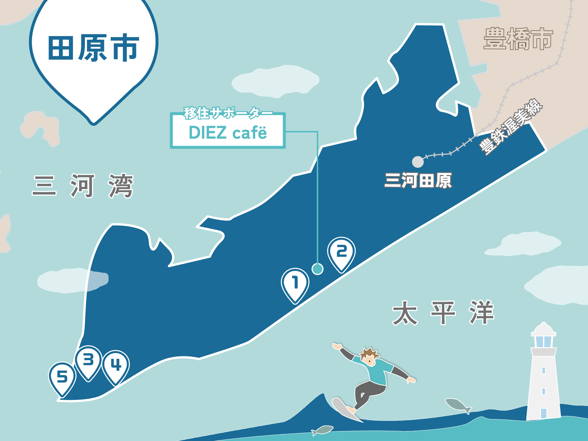 サーフィンと農業を愛する移住コーディネーターの小川 史さんがおすすめする愛知県田原市まるわかりツアーはこちら!!